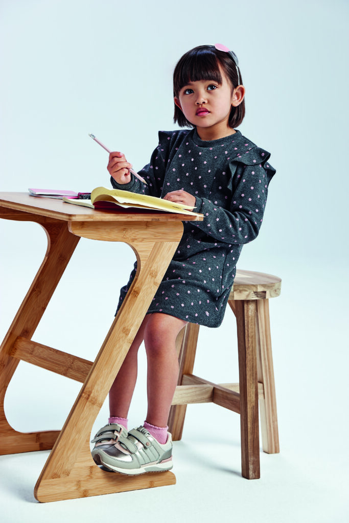 Uno de los elementos clave en el crecimiento de los niños son los zapatos, pues la salud de los pies en los primeros años de vida es fundamental. Mayoral ha diseñado, pensando en la vuelta al cole, dos colecciones con diseños acolchados disponibles de la talla 19 a la 38. Los materiales metalizados y reflectantes, los tonos como el negro, el plomo, el plata y el malva y las zapatillas todoterreno marcan la pauta de la colección “Exploradores espaciales”. Inspirada en el espacio y con aire futurista, esta línea repleta de detalles estimulará su imaginación.